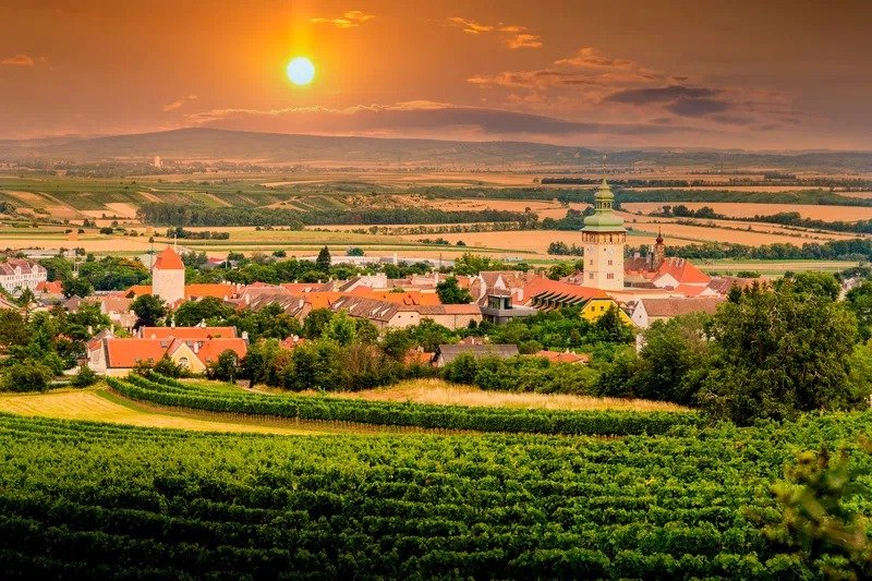 Das Zentrum von Wien, Bezirkshauptstadt Korneuburg sowie der Flughafen